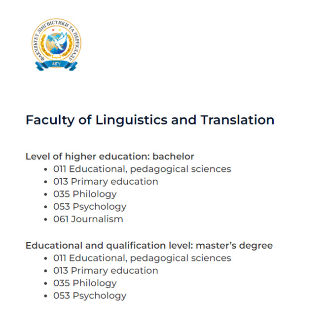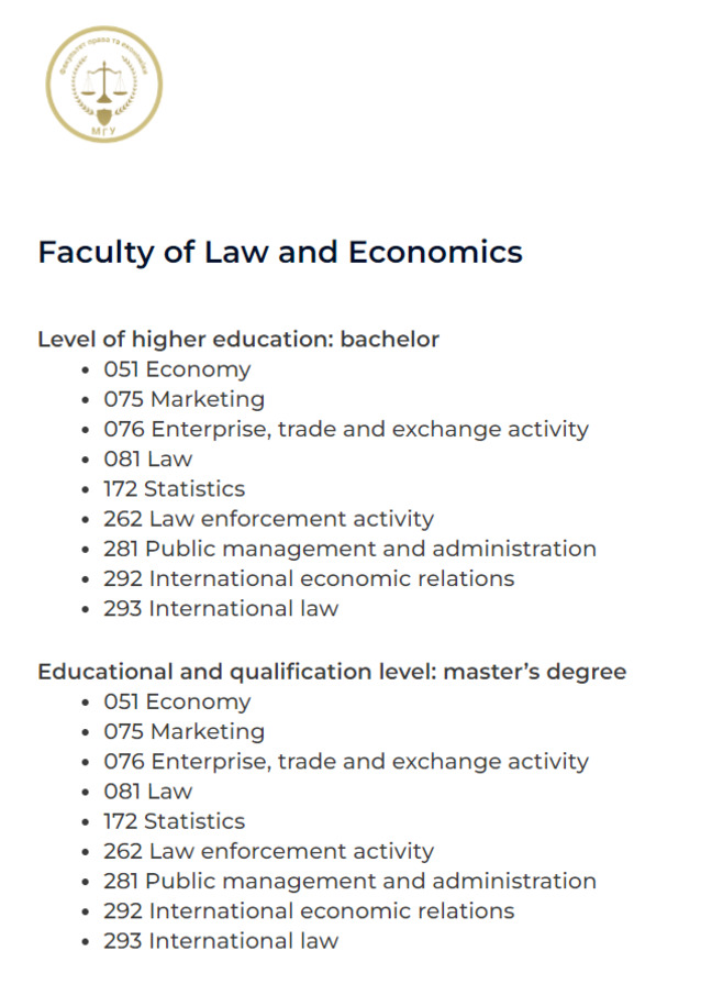 Międzynarodowy Uniwersytet Humanitarny w Odessie (IHU) posiada następujące wydziały: